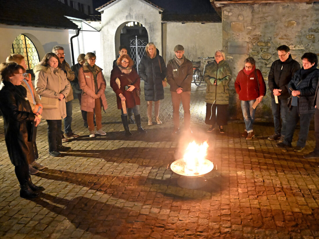 Geschichte, Gedanken und Lieder zum Advent – das prägte die stimmungsvolle Feier am Abend des dritten Advents. Besonders beeindruckend war, wie viele der Anwesenden aktiv daran beteiligt waren: Der Jugendchor sang Adventslieder und lud die Gäste ein, mitzusingen. Marlis Rinert begleitete eine Gruppe aus der Behindertenseelsorge, die einen Strauch mit liebevoll gestalteten Sternen schmückte. Die Jugendlichen von Get out trugen eine bewegende Geschichte bei, während Livia Wey durch die Feier führte. Eine Gruppe Firmanden entzündete die Kerzen für die Aktion «1 Million Sterne».
